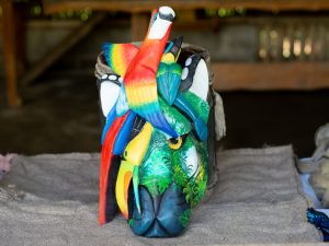 Además de ofrecer servicio de hospedaje y alimentación, este grupo de mujeres también ofrece una gran variedad de máscaras indígenas de tamaño pequeño, mediano o grande.